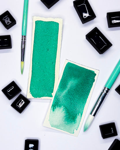 ❗️Handmade paints works different then generic brands. For the best results, add a drop of water to the paint and let it sit for about 2-5 minutes. Use your wet brush to pick up some paint and swirl it into a mixing palette. Add more water for the pigments to flow freely and separate and granulate.