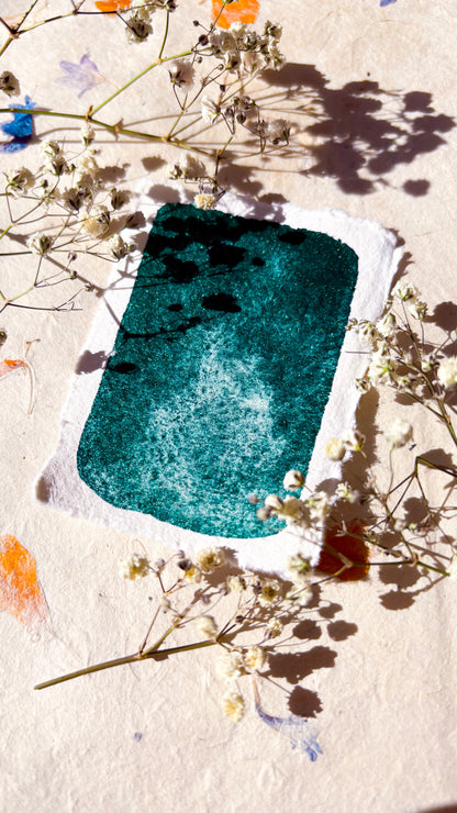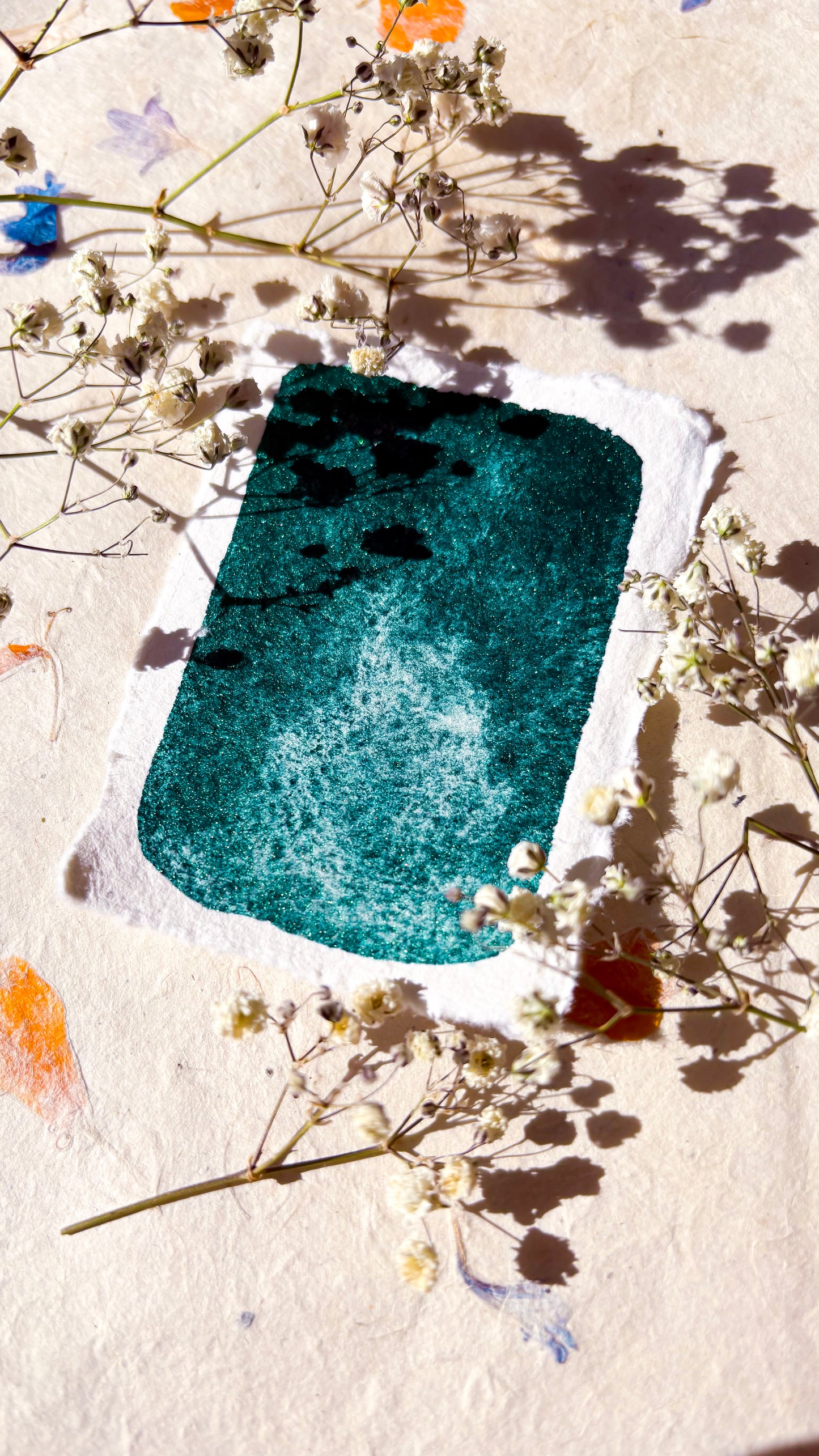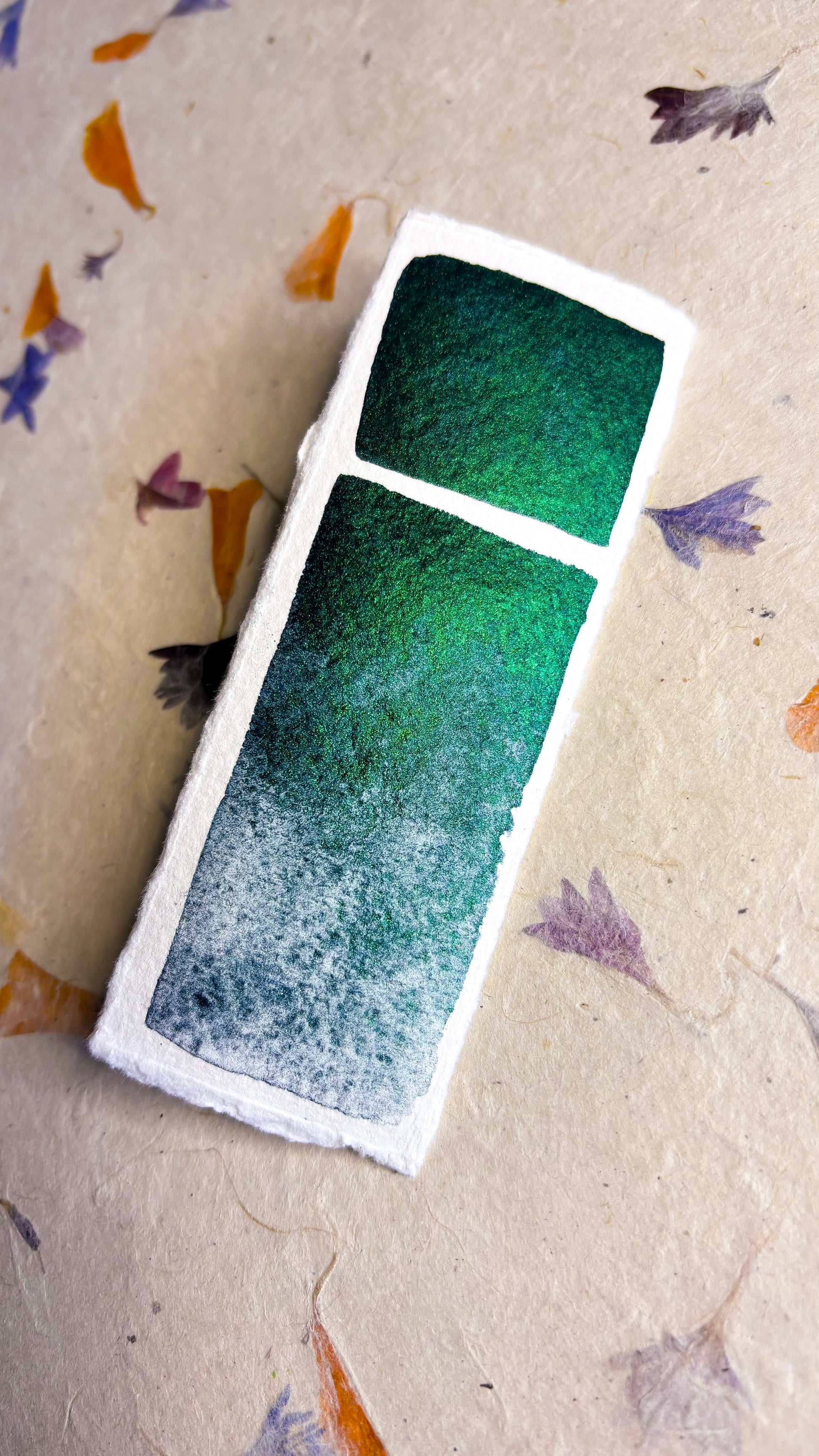 Depending on the light, this metallic watercolor can shift from more blue to more green.