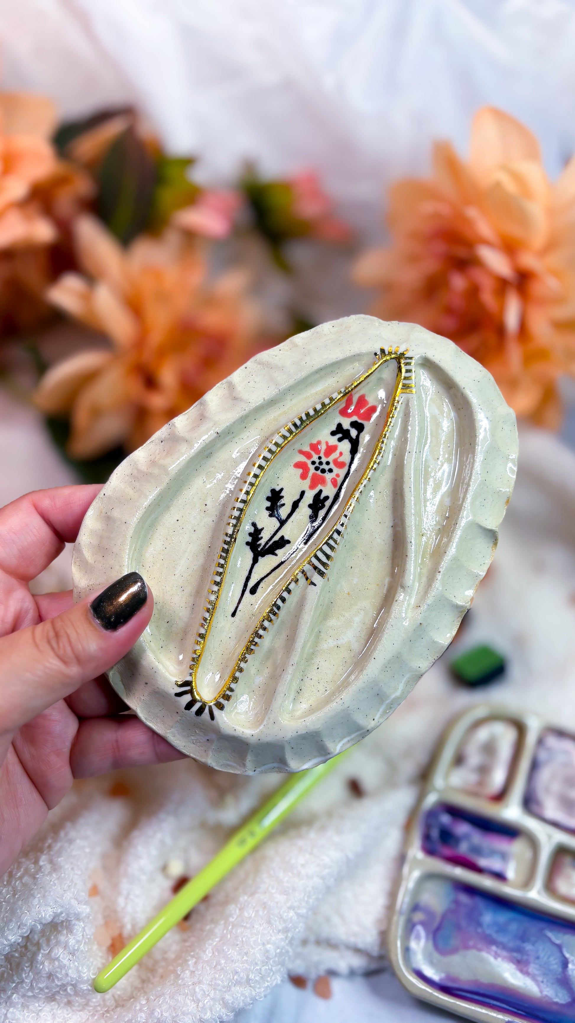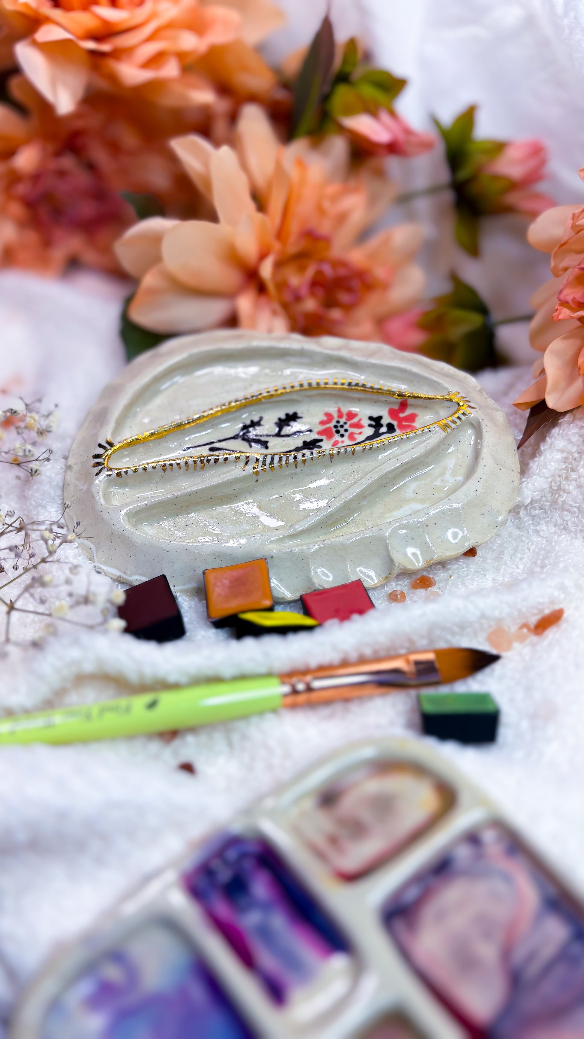Handmade Ceramic Artist Paint mixing palette made by Caitlin Bongers in The Netherlands.