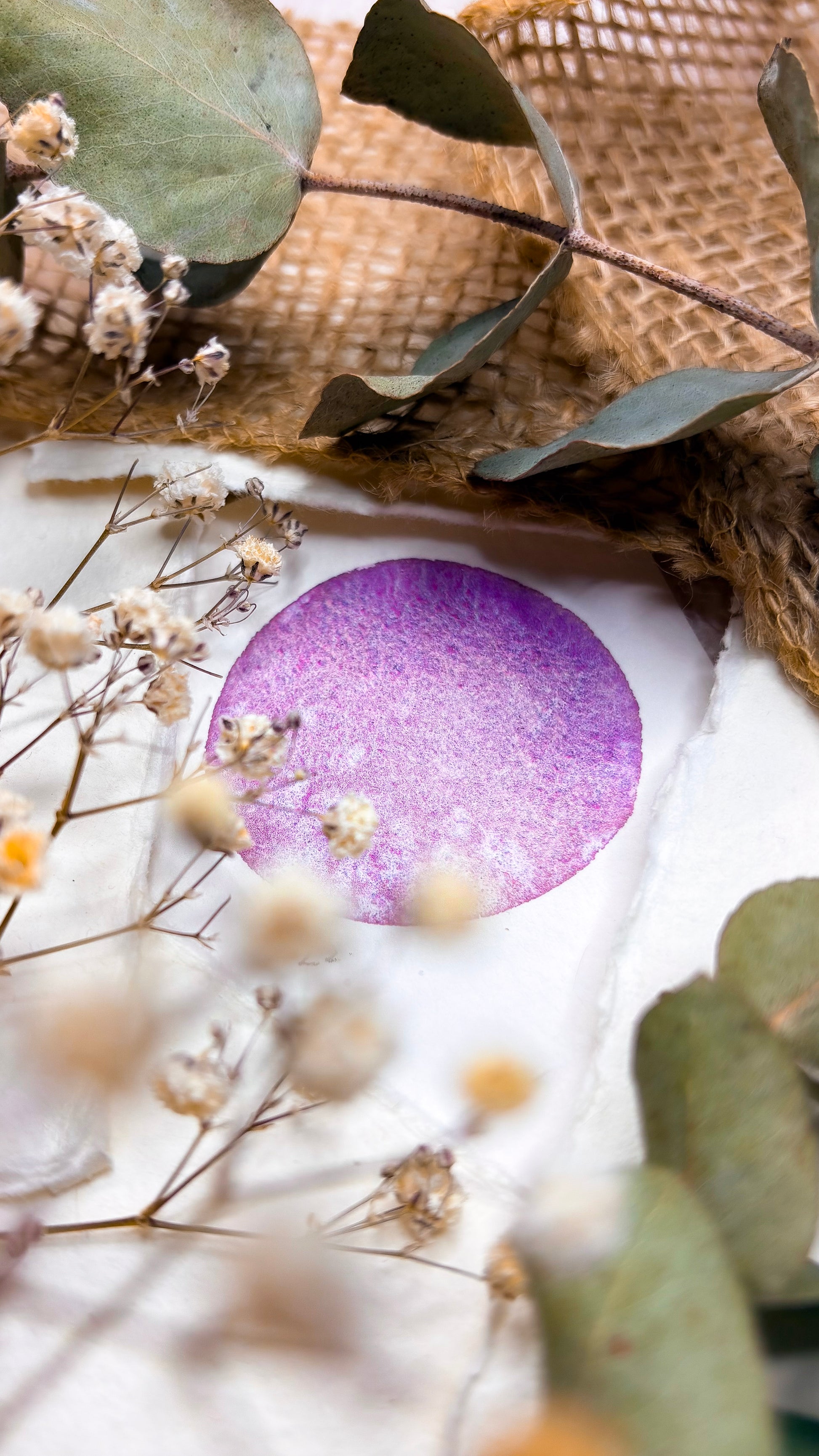 Smudges and Blooms is a moody, spell-soaked pink-violet made with Vintage PV14 and PB29. This handmade watercolor blooms, clouds, and granulates like it has a mind of its own.