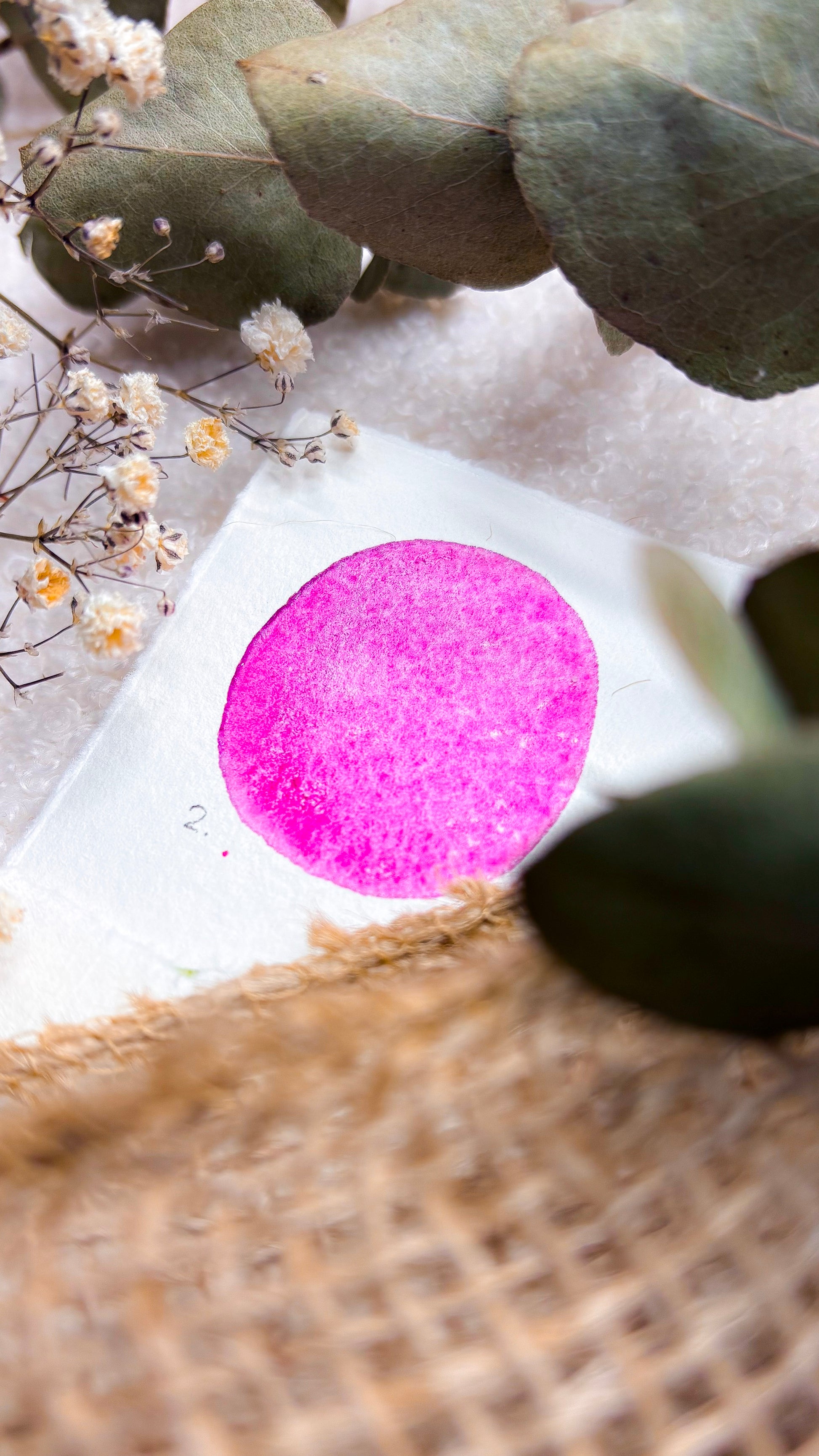 Sticky Fingers is a loud, juicy pink that absolutely refuses to be subtle. Made with PV19, PR122, and Fluorescent Pink, this handmade watercolor delivers punchy pink washes with a neon glow that will steal the spotlight. (Fluorescent pigments are extra vibrant and not fully lightfast. She’s here for a good time, not a long archival one.)